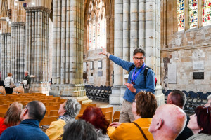 Step inside and be captivated by centuries-old stained glass, the majestic organ casing and the beautiful astronomical clock. From peaceful chantry chapels to many decorated boss stones in the ceiling, every corner tells a story and I would love to share some of my favourite ones with you.